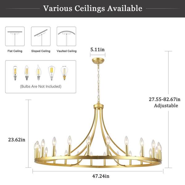 24-Light Gold Farmhouse Wagon Wheel Chandelier for Living Room, Kitchen Island, Bedroom