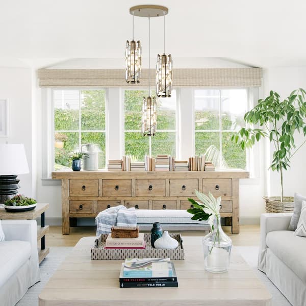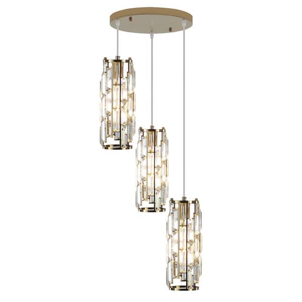 3 Lights Gold Chandelier Modern Elegant Pendant Light with Crystal Cover
