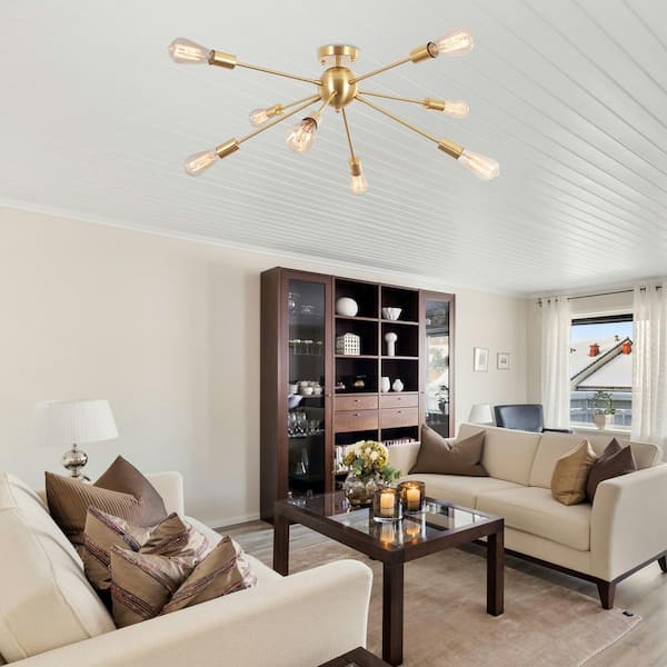 30.11 in. 8-Light Gold Modern Linear Semi-Flush Mount with No Bulbs Included