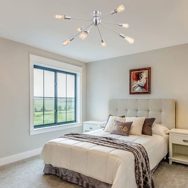 30.11 in. 8-Light Nickel Modern Linear Semi-Flush Mount with No Bulbs Included
