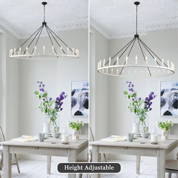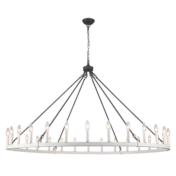 30-Light Antique Black and Distressed White Farmhouse Wagon Wheel Candlestick Chandelier