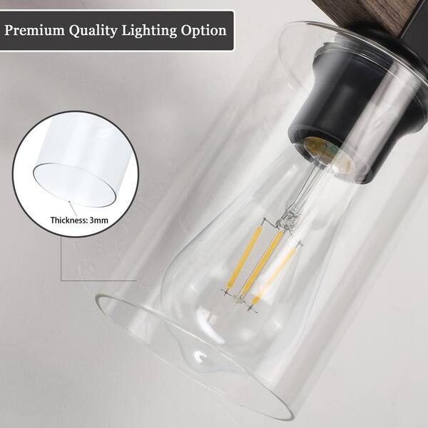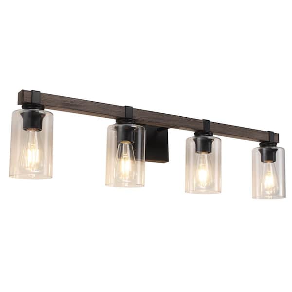 34.64 in. 4-Light Black and Imitation Wood Grain Bathroom Vanity Light with Clear Glass Shades