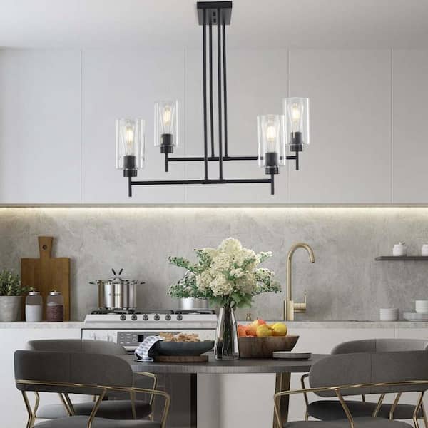 4 Light Black Rustic Kitchen Island Linear Chandelier for Living Bedroom Room with No Bulbs Included