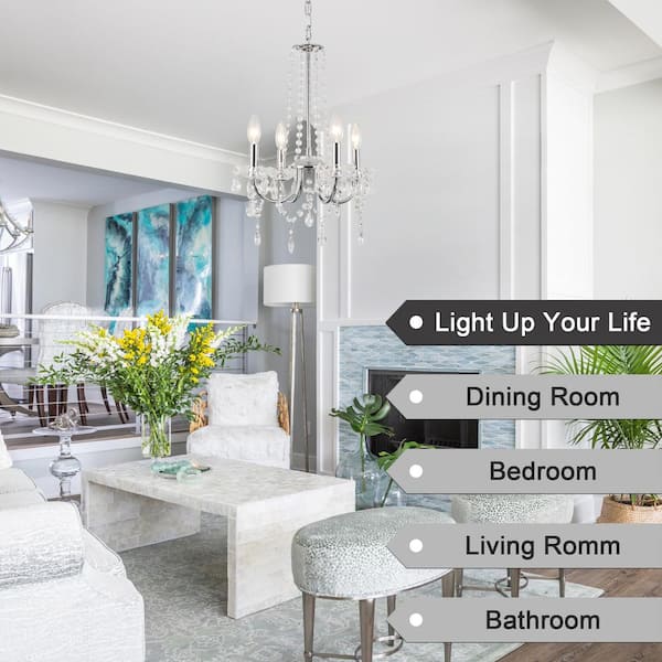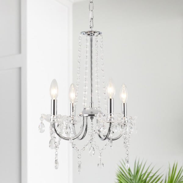 4-Light Chrome Candle-Style Crystal Chandelier Classic Pendant Light