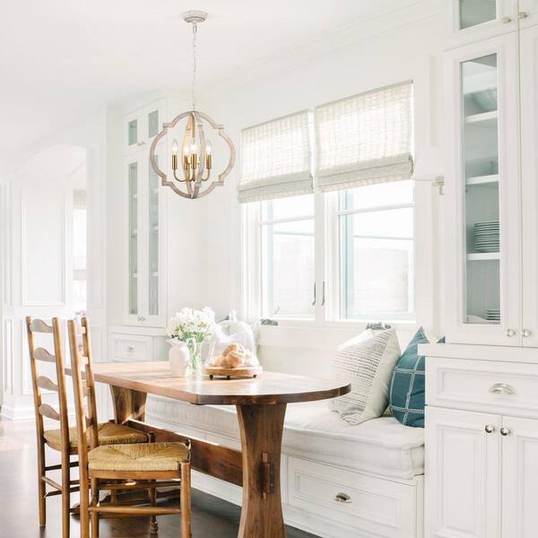 4-Light Dimmable Gold Distressed Wood Farmhouse Country Geometric Chandelier for Kitchen Island with No Bulbs Included