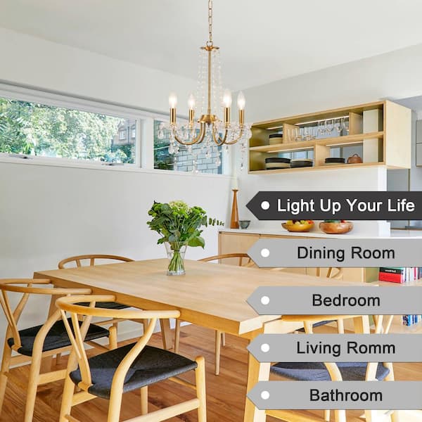 4-Light Gold Candle-Style Crystal Chandelier Classic Pendant Light