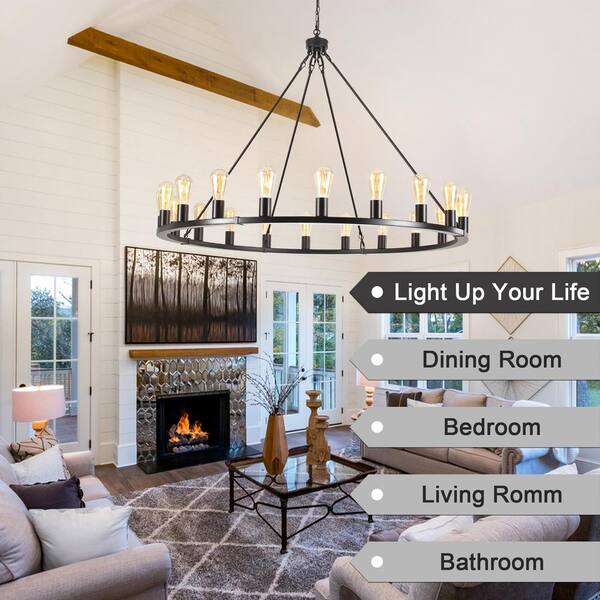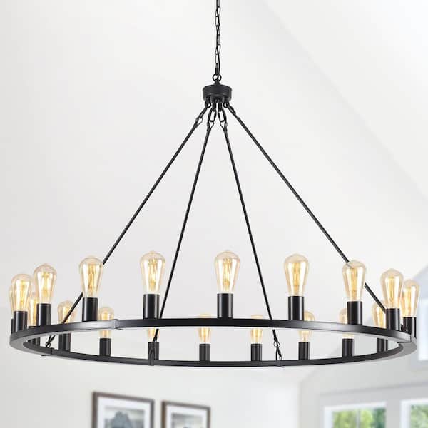 40-Watt 20-Light Black Farmhouse Wagon Wheel Chandelier, No Bulb Included