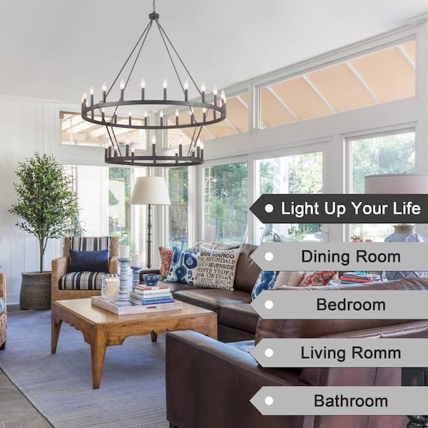47.24 in. 36-Light Antique Black Farmhouse Wagon Wheel Chandelier 2 Tier Large Round Industrial Pendant Light