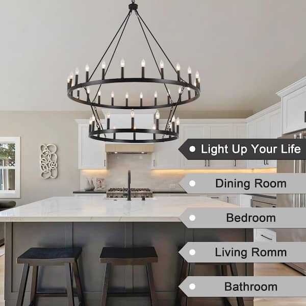 47.24 in. 36-Light Black Farmhouse Wagon Wheel Chandelier 2 Tier Large Round Industrial Pendant Light