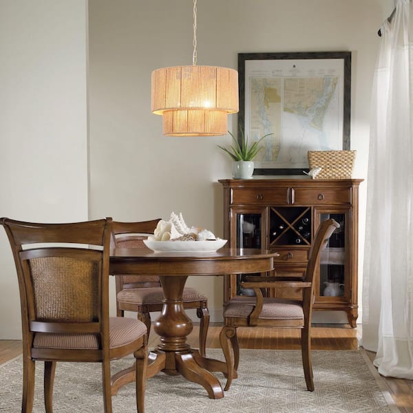 5 Light 2-Tier Gold Drum Rattan Dimmable Chandelier for Kitchen Island with No Bulbs Included