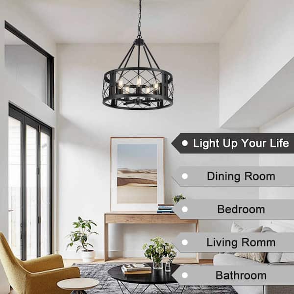 5-Light Black Rustic Farmhouse Drum Chandelier for Kitchen Island with no bulbs included