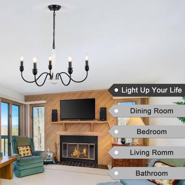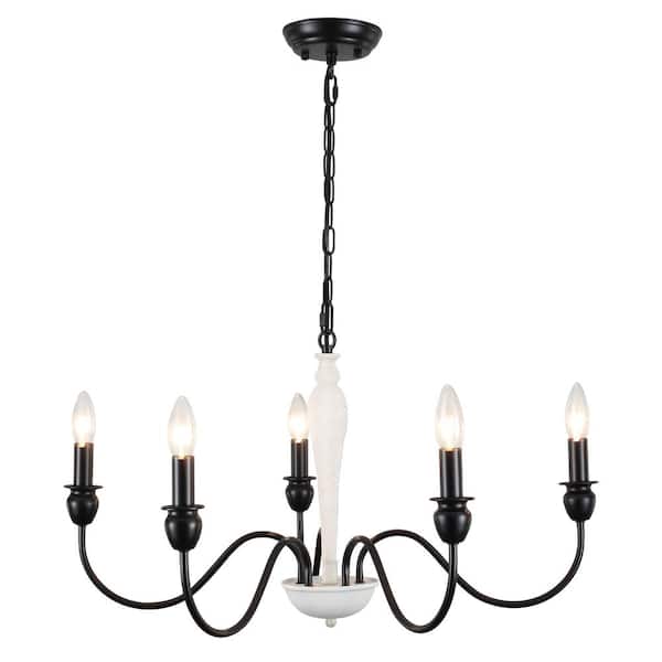 5-Light Black and Distressed White Farmhouse Chandelier Adjustable Height Light Fixture