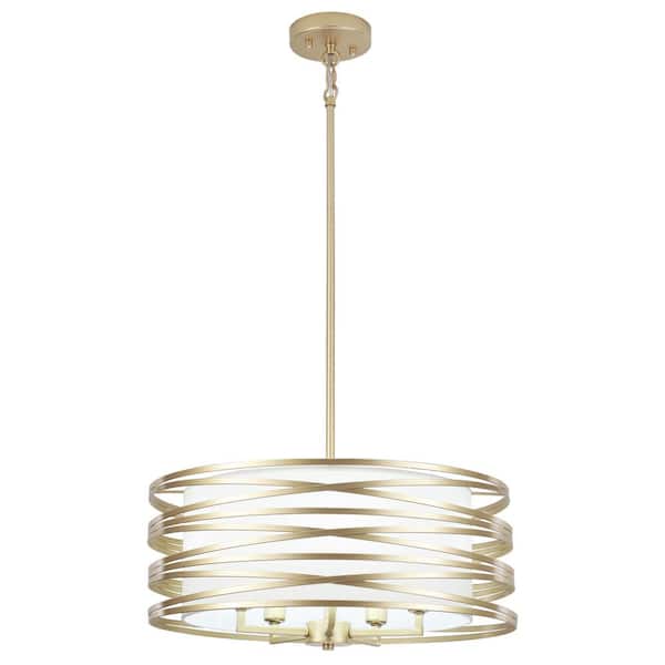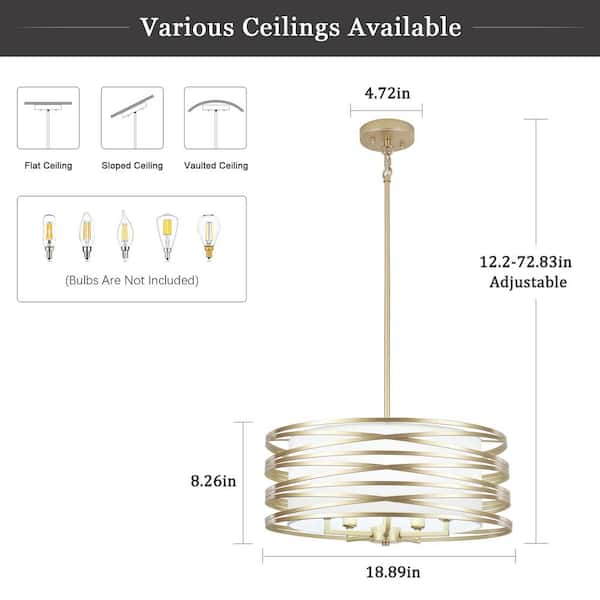 5-Light God and White Modern Chandelier Drum Light Fixture with Fabric Shaded for Bedroom