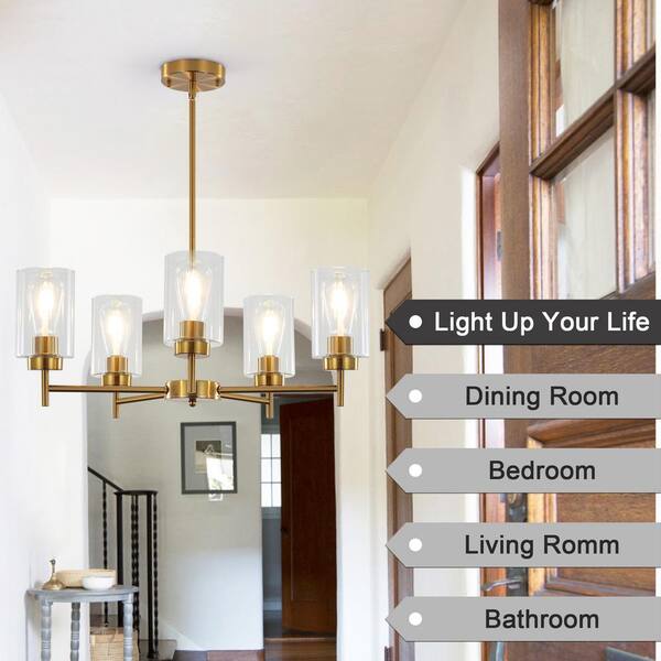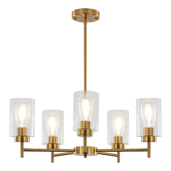 5-Light Gold Contemporary Chandelier with Clear Glass