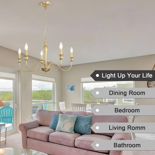 5-Light Gold Farmhouse Chandelier Adjustable Height Light Fixture