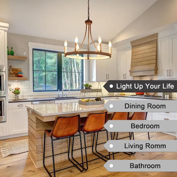 6-Light Antique Black and Vintage White Farmhouse Wagon Wheel Chandelier Rustic Dining Room Pendant Light