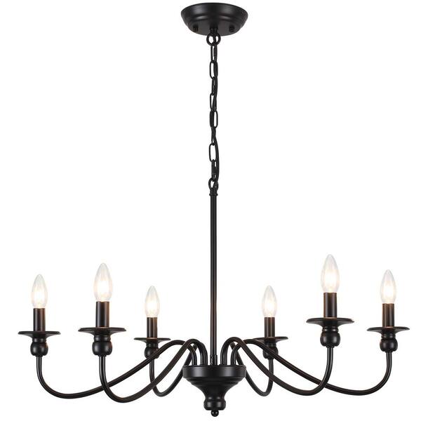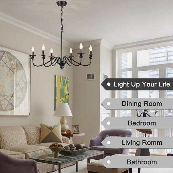 6-Light Black Farmhouse Candle Style Chandelier Kitchen Island Dining Room Pendant Light, Bulbs Not Included