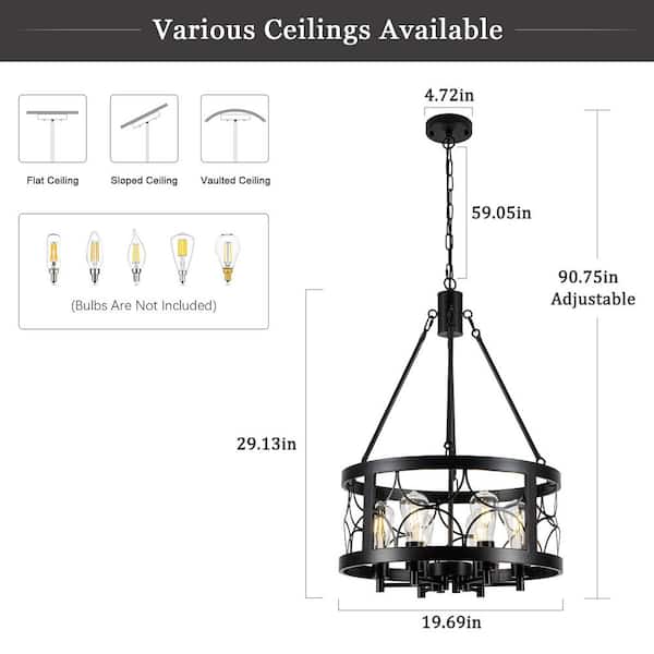 6-Light Black Farmhouse Chandelier Drum Pendant Light for Kitchen Island, Dining Room, Living Room