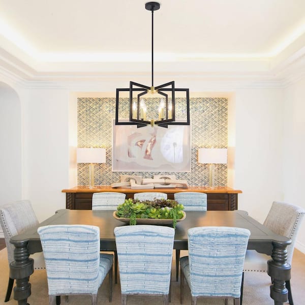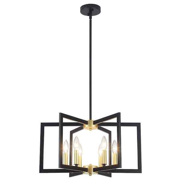 6 - Light Black/Gold Candle-Style Geometric Square / Rectangle Chandeliers for Kitchen Island with No Bulbs Included