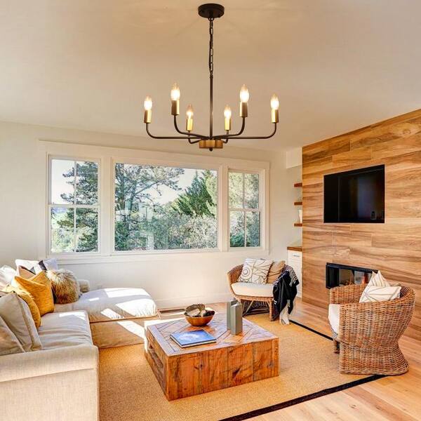 6 Light Black/Gold Dimmable Classic / Traditional Chandelier for Restaurant with no bulbs included