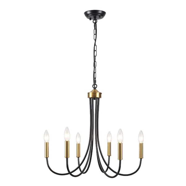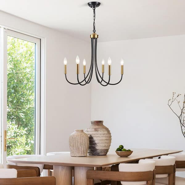 6-Light Black Gold Dimmable Modern Candle Chandelier for Dinning Room with No Bulbs Included