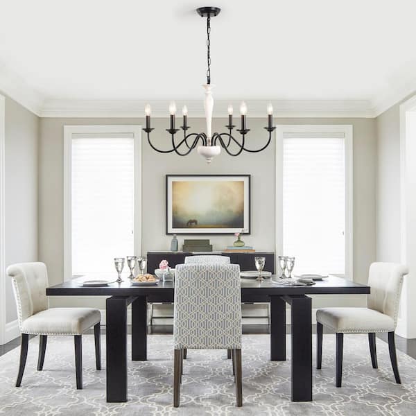 6-Light Black and Distressed White Modern Candlestick Rustic Chandelier for Kitchen Island Lighting Fixtures Hanging