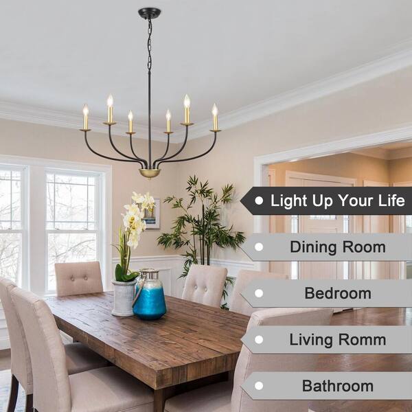 6-Light Black and Gold Linear Chandelier for Dining Room, French Country Candlestick Chandelier