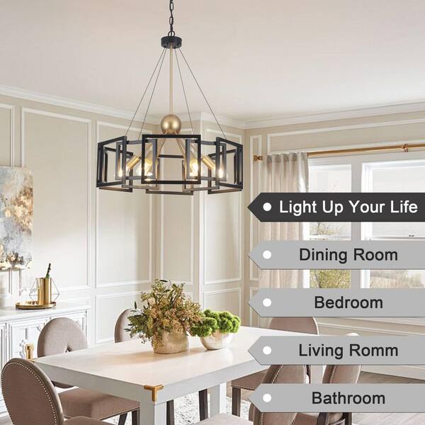 6-Light Black and Gold Modern Geometric Chandelier Light Fixture for Kitchen Island