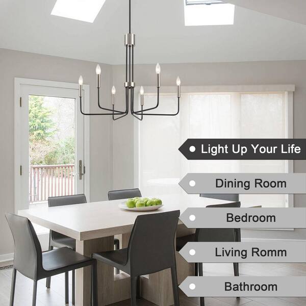6-Light Black and Nickel Rustic Industrial Candle Chandelier Ceiling Hanging Lighting