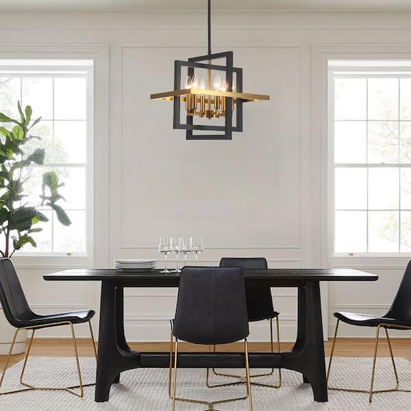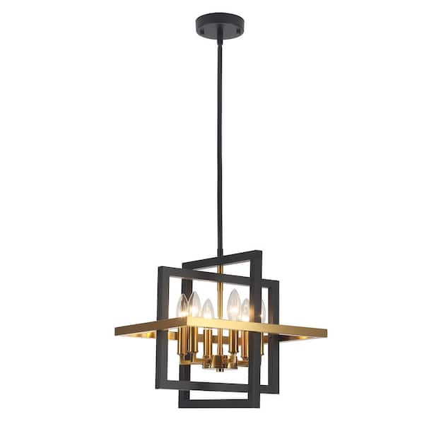 6 Light Dimmable Black Gold Square Geometric Candle Style Chandelier for Kitchen Island with No Bulbs Included