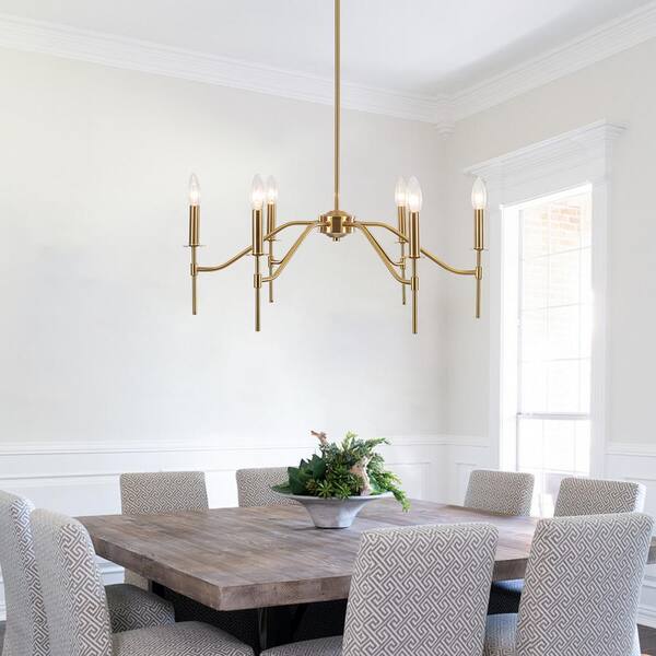 6 Light Dimmable Gold Rustic Linear Classic / Traditional Chandelier for Kitchen Island with No Bulbs Included