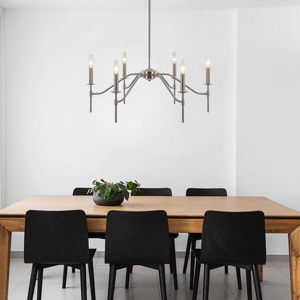 6 Light Dimmable Nickel Rustic Linear Classic / Traditional Chandelier for Kitchen Island with No Bulbs Included