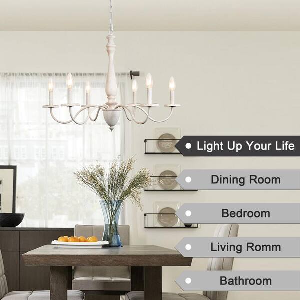 6-Light Distressed White Farmhouse Chandelier for Kitchen Island with no bulbs included