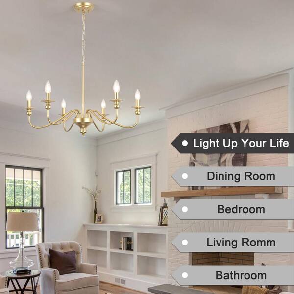 6-Light Gold Farmhouse Candle Style Chandelier Kitchen Island Dining Room Pendant Light, Bulbs Not Included