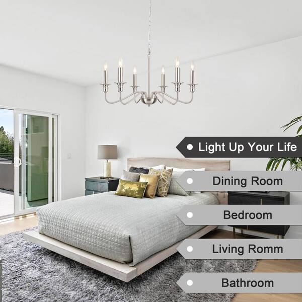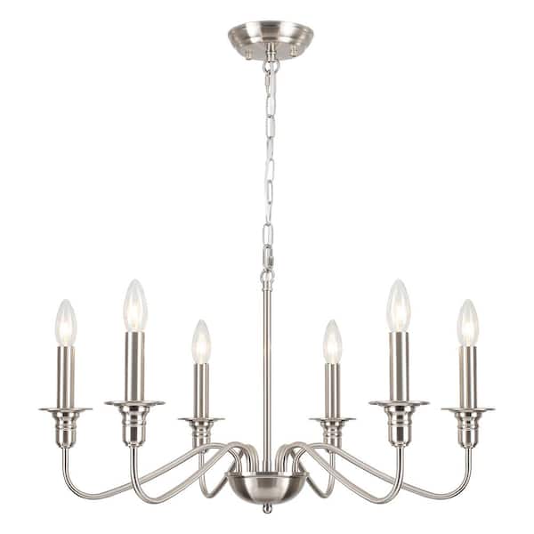 6-Light Nickel Modern Adjustable Height Rustic Chandelier Candle Hanging Light Fixture