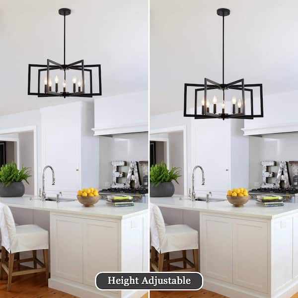 7-Light Black Modern Chandelier Light Fixture with Geometric Metal Shade, No Bulbs Included