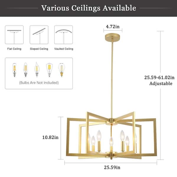7-Light Gold Modern Chandelier Light Fixture with Geometric Metal Shade, No Bulbs Included