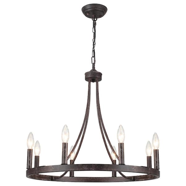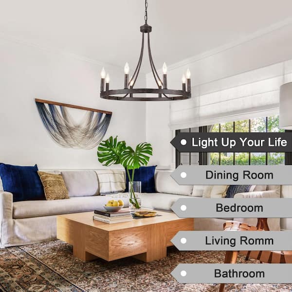 8-Light Antique Black Modern Adjustable Height Light Fixture Wagon Wheel Chandelier