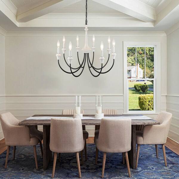8-Light Black Distressed White Classic / Traditional Retro Candle Chandelier for Kitchen Island with No Bulbs Included