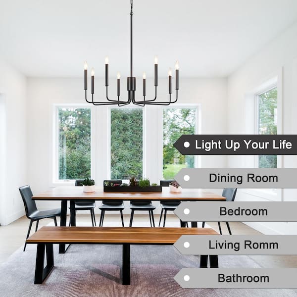8-Light Black Height Adjustable Modern Linear Candlestick Chandelier, Hanging Light Fixture