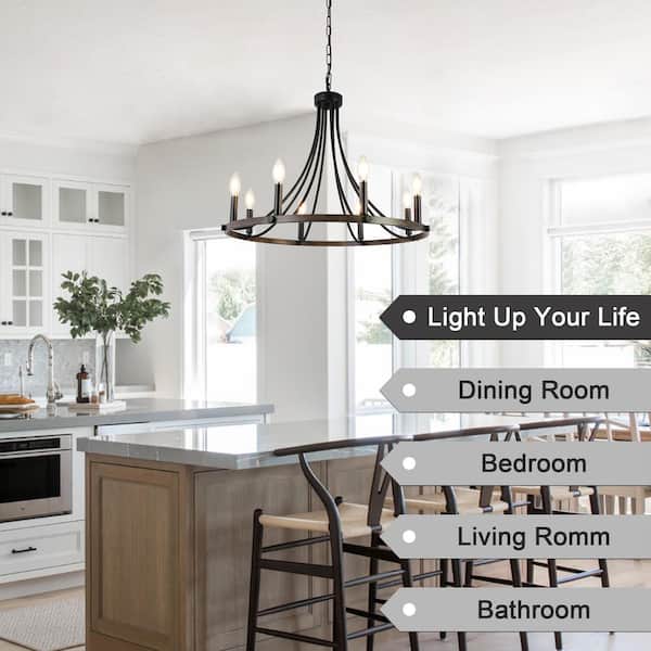 8-Light Black and Imitation Wood Grain Farmhouse Wagon Wheel Chandelier Light Fixture