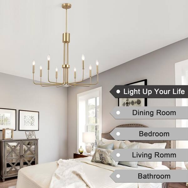 8-Light Brass Rustic Industrial Candle Chandelier Ceiling Hanging Lighting