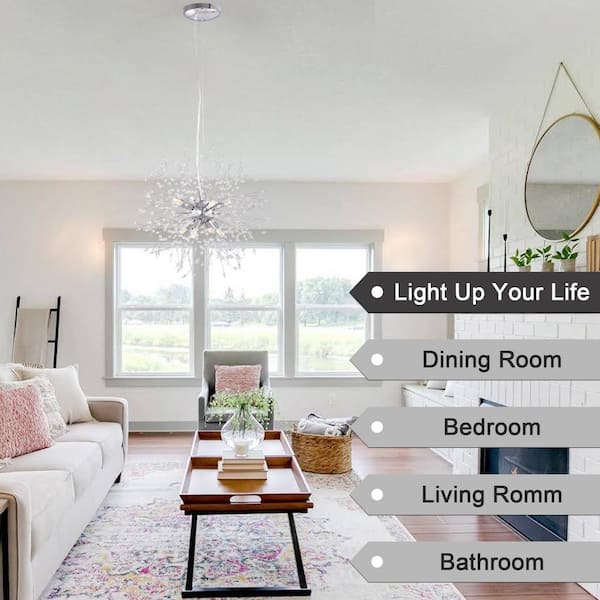 8-Light Chrome 18.11 in. Dandelion Firework Chandelier Crystal Starburst Pendant Light