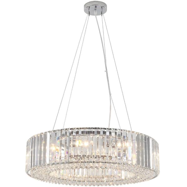 8-Light Chrome Drum Chandelier Hanging Pendant Light with Crystal Shade
