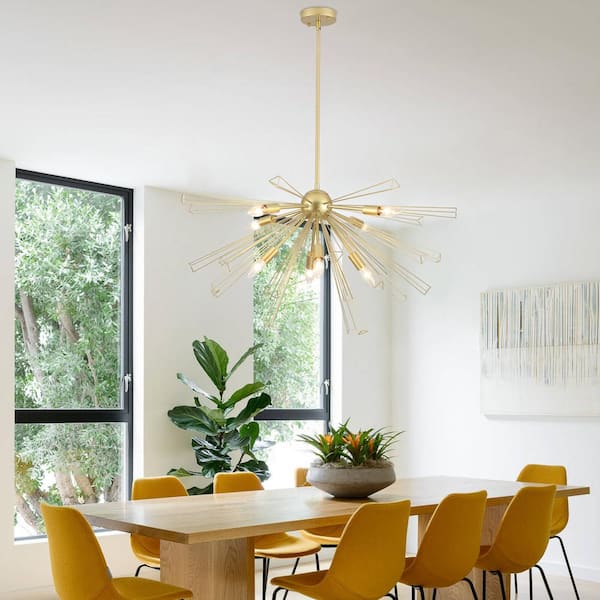 8-Light Dimmable Gold Sputnik Sphere Chandelier for Kitchen Island, Dining Room with No Bulbs Included