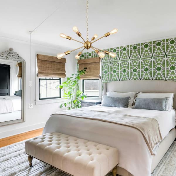 8-Light Gold Dimmable Plug in Sputnik Chandelier with Cord & ON/OFF Switch for Living Room with No Bulbs Included