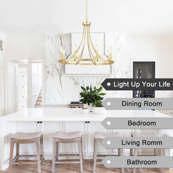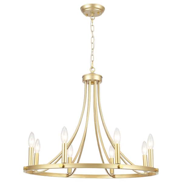 8-Light Gold Farmhouse Wagon Wheel Chandelier Candle Style Light Fixture