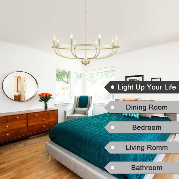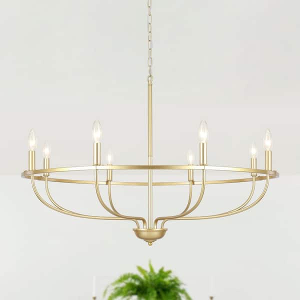 8-Light Gold Farmhouse Wagon Wheel Vintage Candle Chandelier