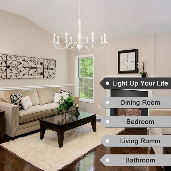 8-Light Vintage White French Country Candle Style Chandelier Farmhouse Pendant Light for Dining Room