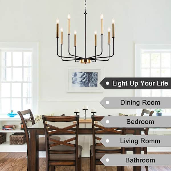 8-light Black and Gold Candlestick Chandelier for Kitchen with no bulbs included
